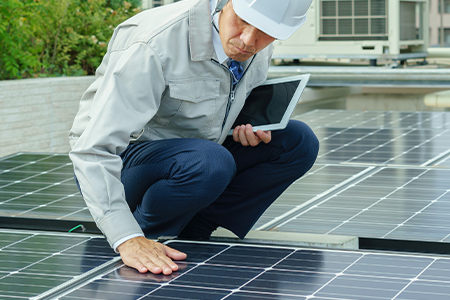 太陽光発電システムの設計を行います。これには、建物や敷地の特性に合わせたパネルの配置や取り付け方法の計画立案、出力最大化のための最適なインバーター(変換装置)の選定などが含まれます。